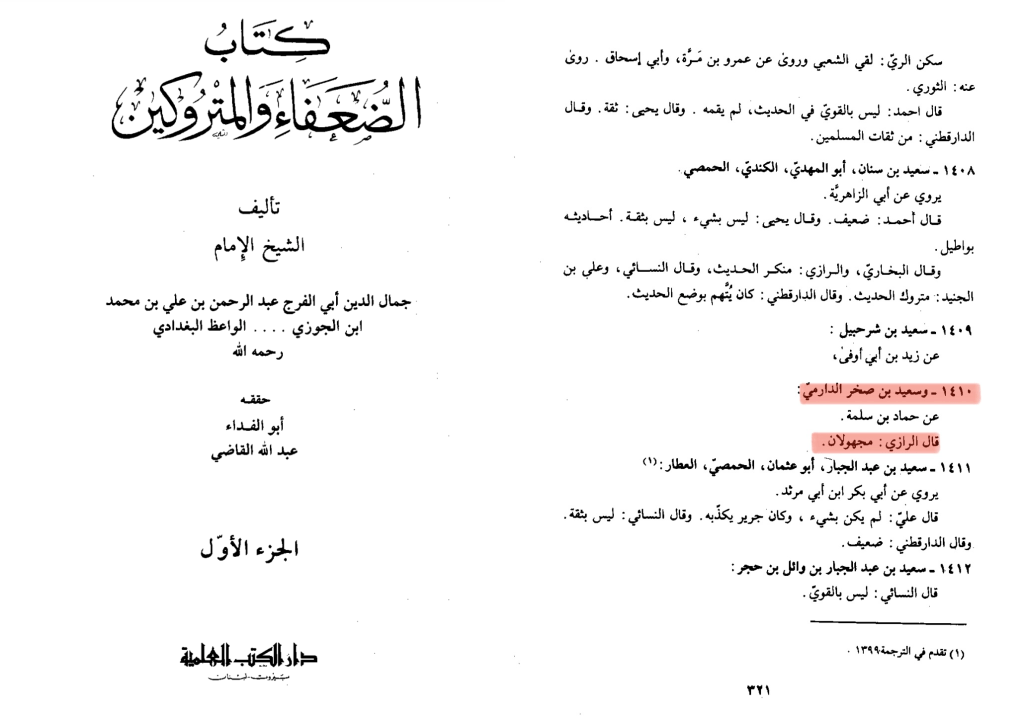 Scan 5: Imam Ibn Al Jawzi “كتاب الضعفاء والمتروكون لابن الجوزي” Vol1 Pg 321